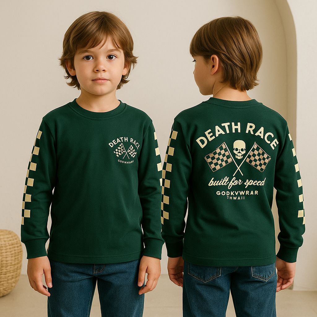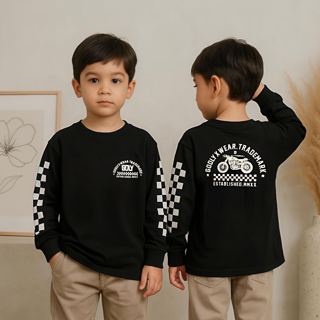 Baju Kaos Distro Anak Laki Laki Cowok Lengan Panjang Usia 1-12 Tahun Motif Motor Depan Belakang