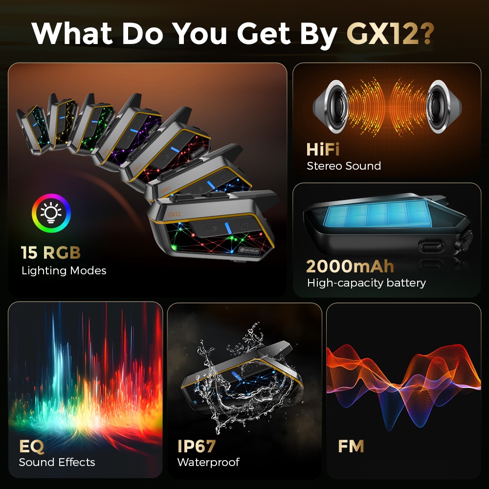 GEARELEC GX12 Headset Interkom Helm Sepeda Motor Untuk Berbagi Musik Saat Dalam Interkom Hingga 10 Pengendara