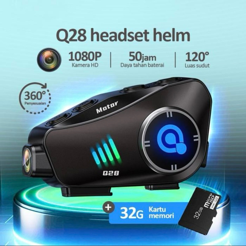 INTERCOM KAMERA Q28 HEADSET HELM BLUETOOTH 5.3 FULL HD 1080P WATER RESISTANT IP66 KOMPATIBILITAS HP ANDROID , IOS APLIKA