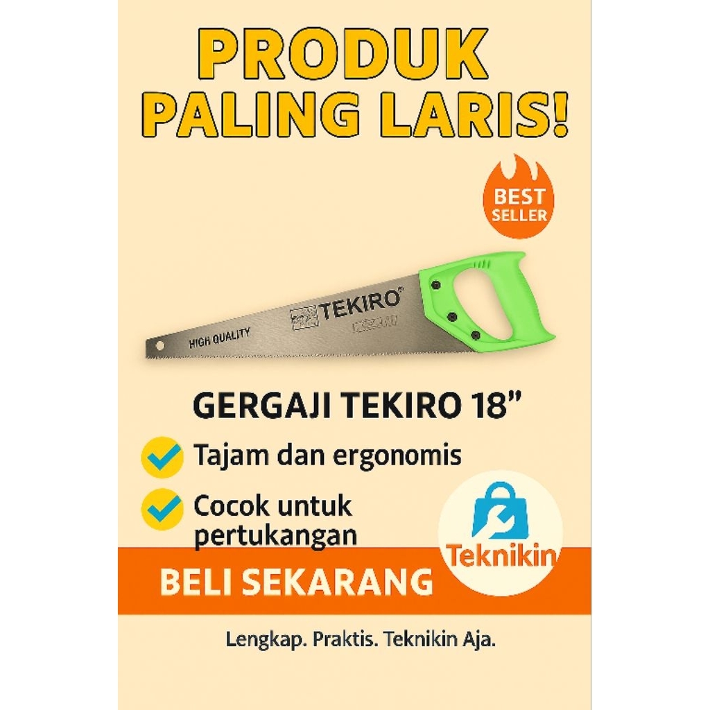 Gergaji Tangan Tekiro Gagang Plastik Ergonomis 18/20 Inch.