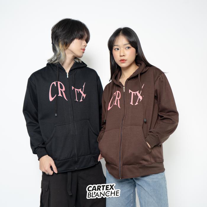 CARTEXBLANCHE TWISTED CRTX HOODIE ZIPPER SABLON PRIA & WANITA DISTRO FLEECE M - XXL - HITAM, M