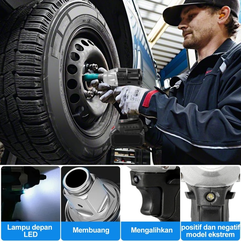 DISKOOM Official Impact Wrench Cordless Baterai Brushless - 3200NM Torsi Tinggi, Cocok Membuka Baut, Seperti Impact Baterai (1 Set Lengkap)