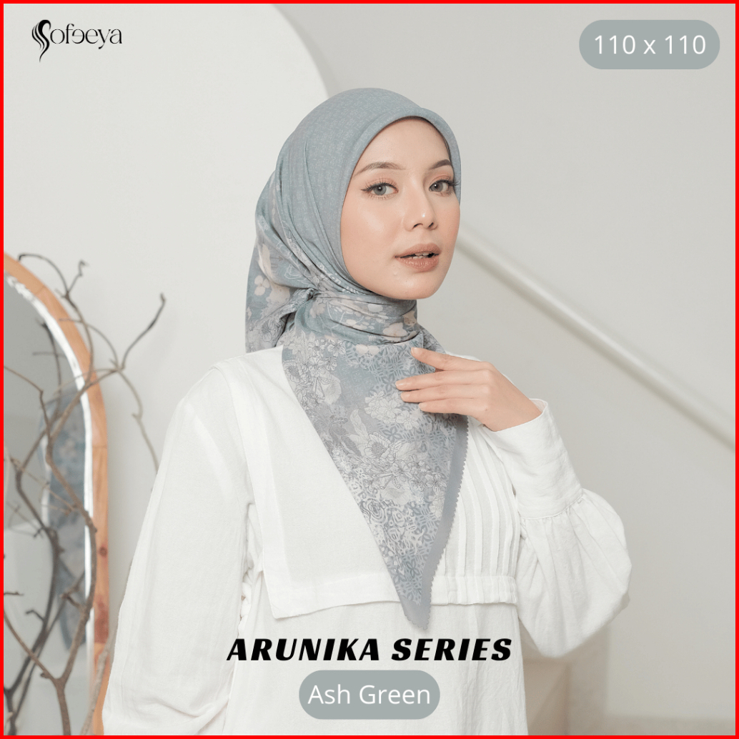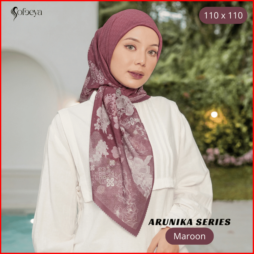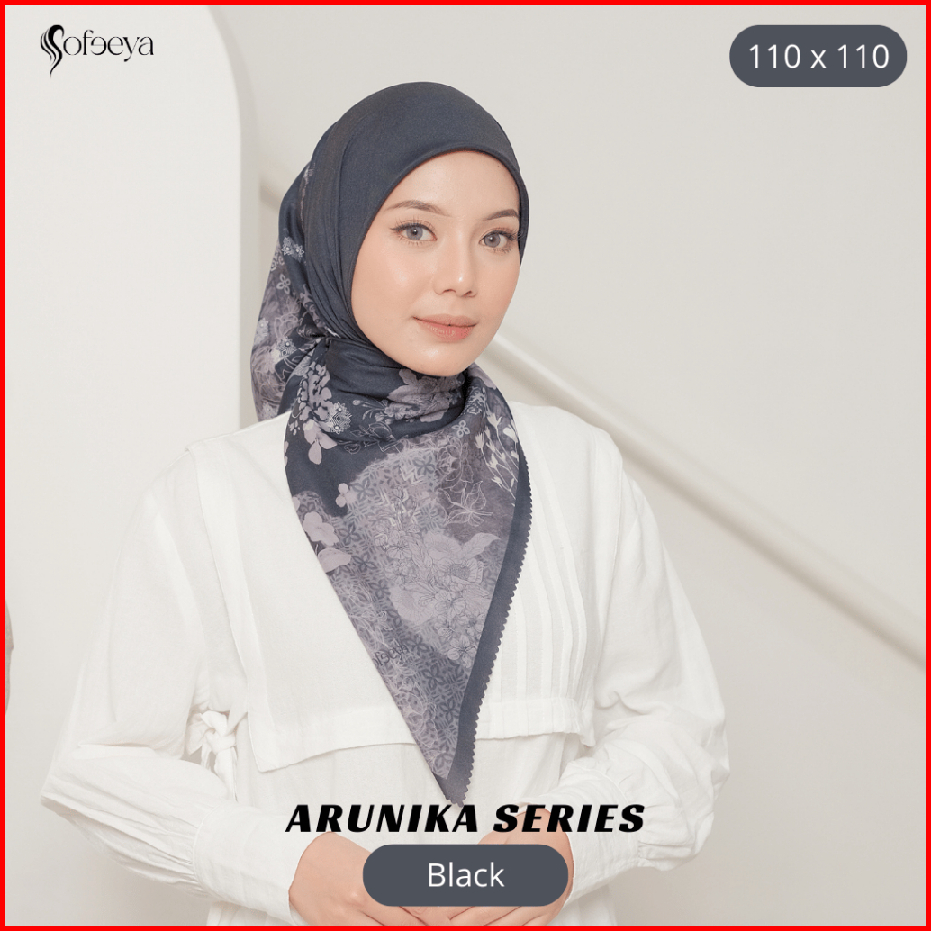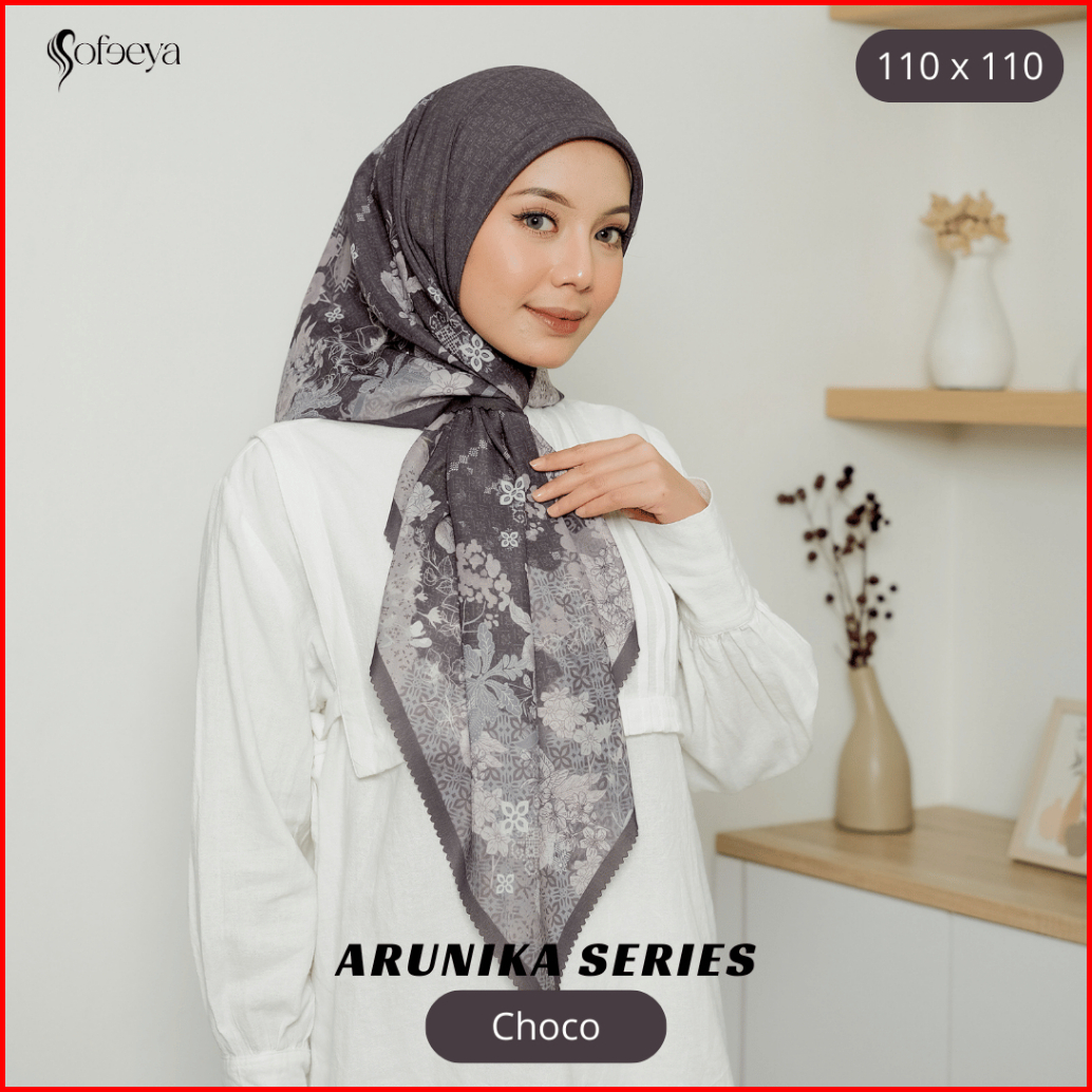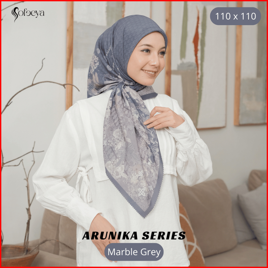 Sofeeya - Arunika Series Kerudung Segi Empat Motif Voal Ultrafine Hijab Printing 110 X 110 Dan Jilbab Syari Jumbo 130 X