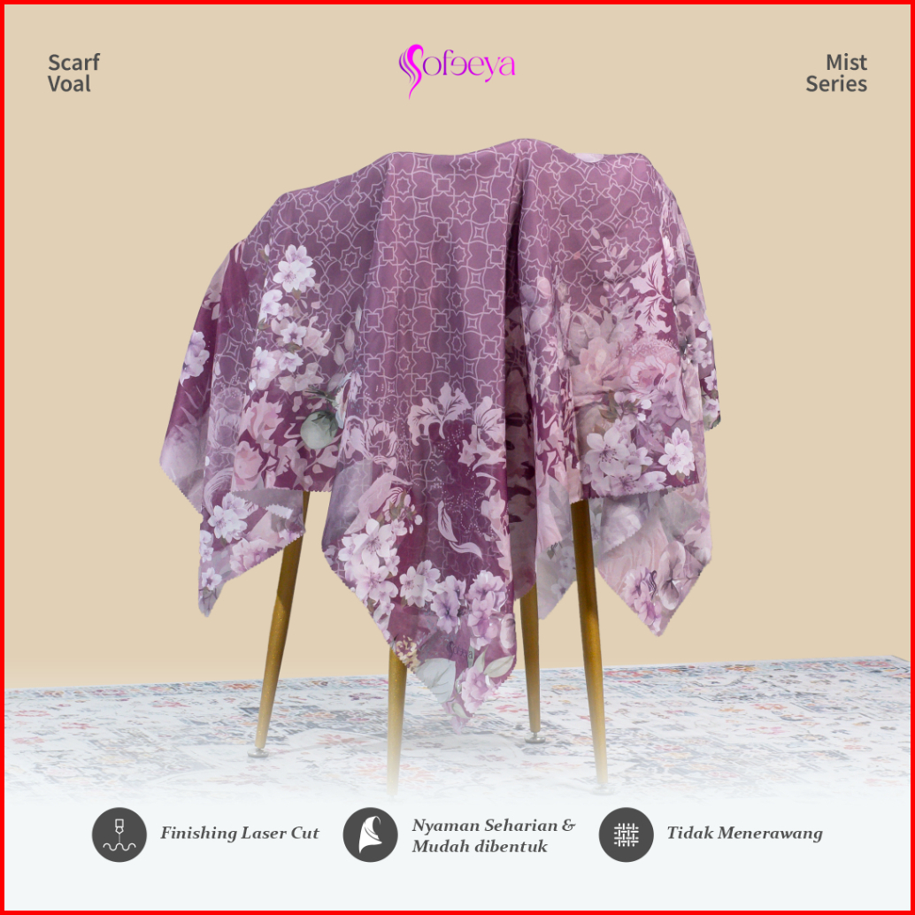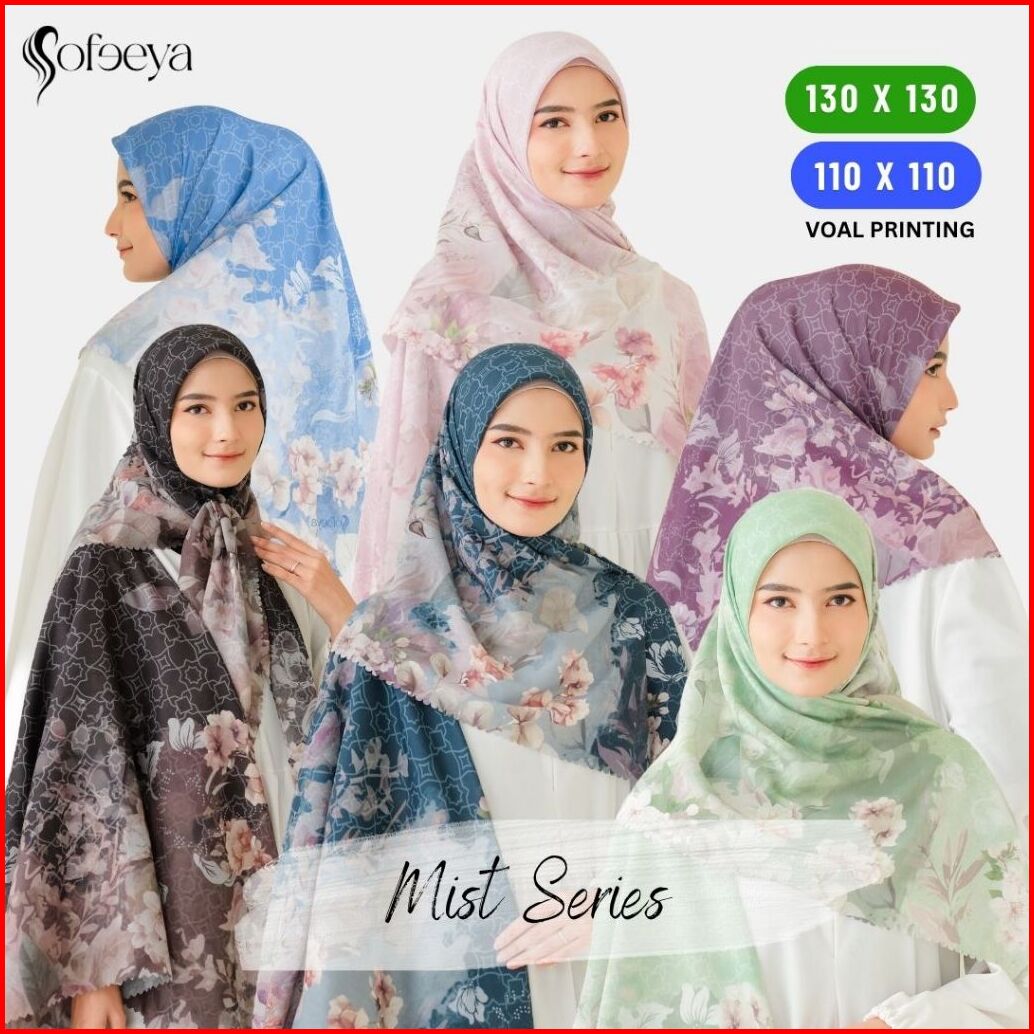 Sofeeya - Hijab Voal Motif Printing Mist Series Jilbab 110 X 110 Cm Dan Syari Jumbo 130 X 130 Cm Motif Bunga Untuk Kemba