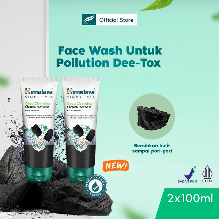 ( BUNDLE ISI 2 ) HIMALAYA CHARCOAL DEEP CLEANSING WASH 100ML | SABUN CUCI MUKA ANTI POLUSI | ARANG KELAPA AKTIF & TEH HI