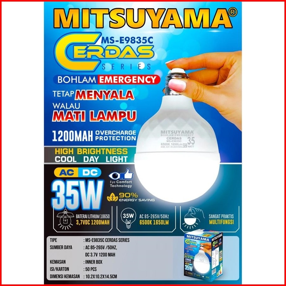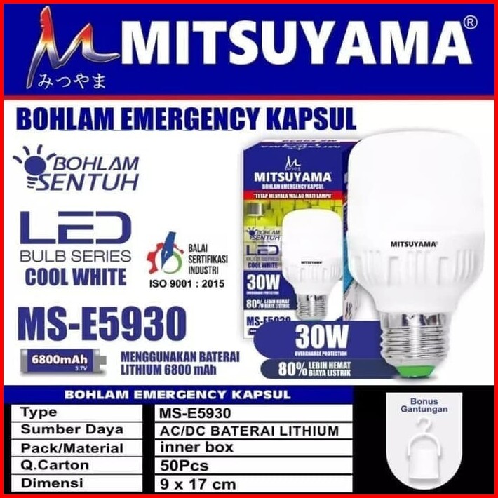 Lampu Bohlam Led Emergency 30 Watt Ms-e5930 Otomatis Nyala Saat Mati Lampu