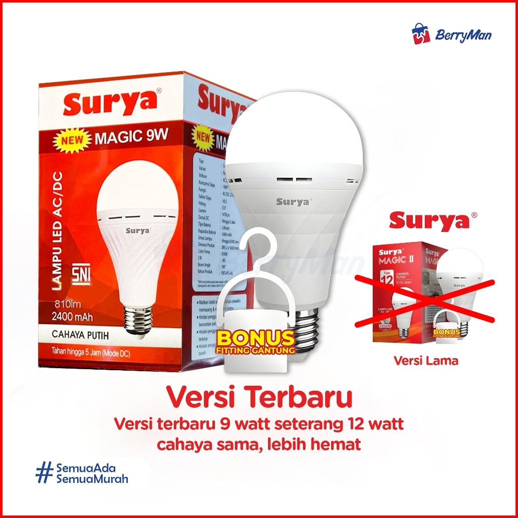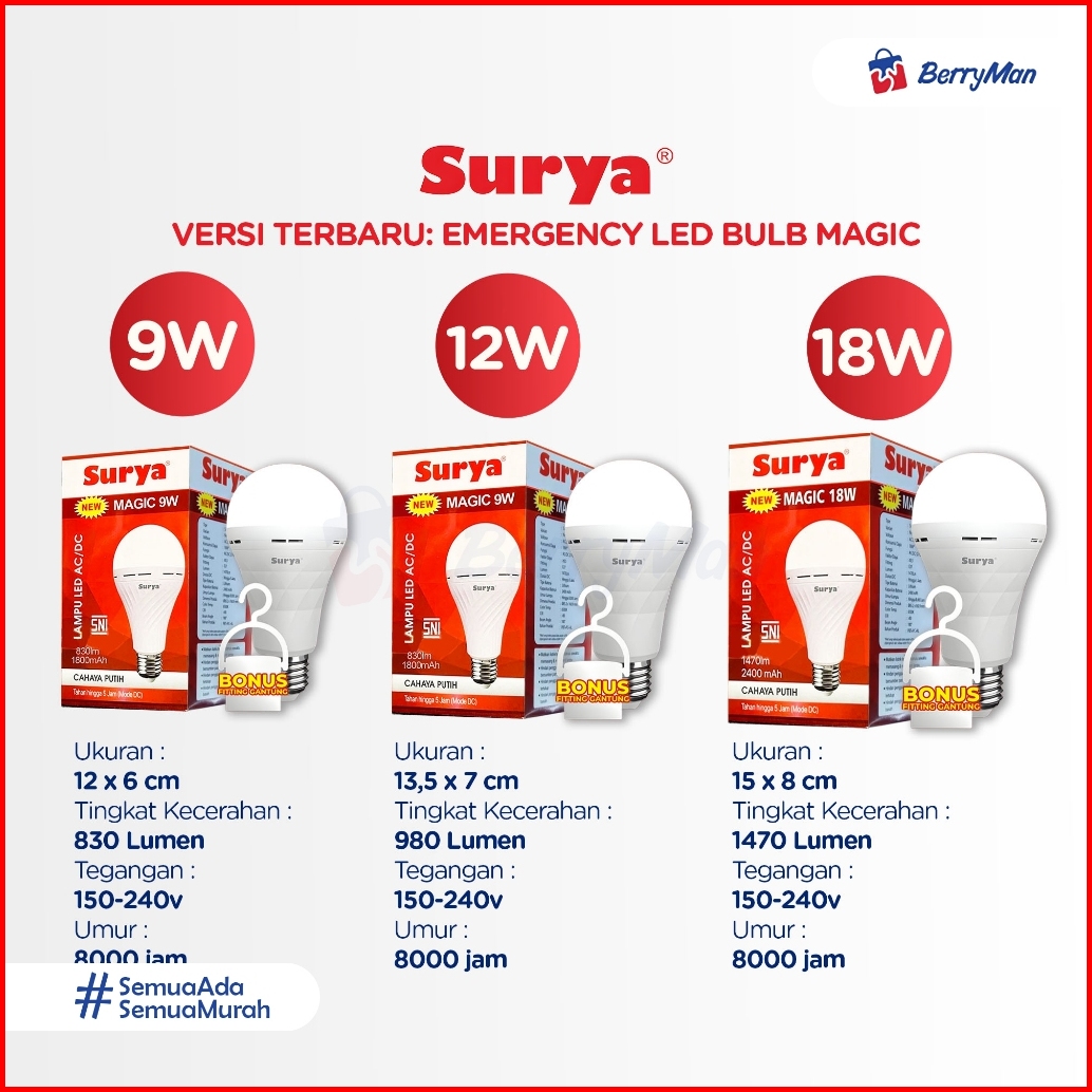 Surya Magic Ii Lampu Bohlam Led Emergency Tipe Ac Dc 9w 12w 18w Cahaya Putih Super Terang