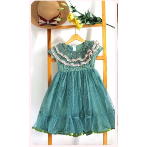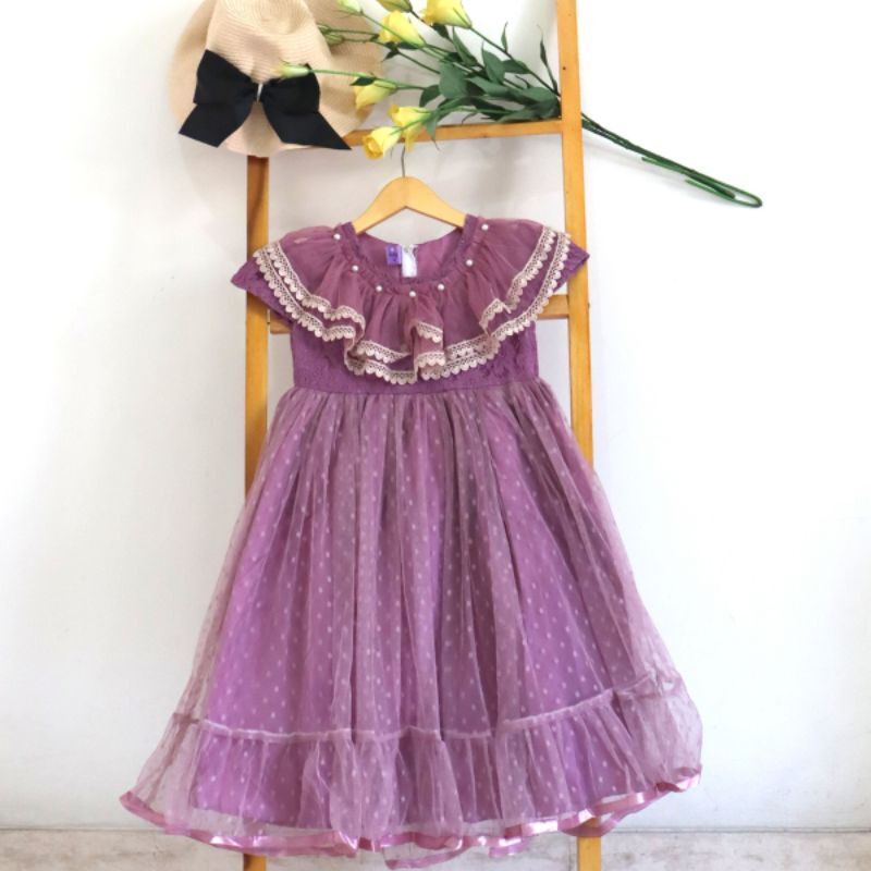 Baju Gaun Anak Perempuan Salsa Dress Renda Tingkat Kombinasi Tile Polkadot Usia 3-10 Tahun