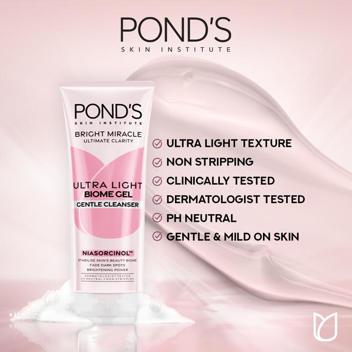 PONDS BRIGHT MIRACLE ULTRA LIGHT BIOME GEL GENTLE CLEANSER - BRIGHTENING FACIAL WASH 90GR