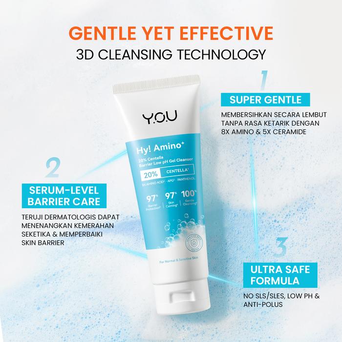 YOU HY AMINO+ 20 PERSEN CENTELLA BARRIER LOW PH GEL CLEANSER SABUN CUCI MUKA PEMBERSIH WAJAH AMINO FACIAL WASH LOW PH GENTLE