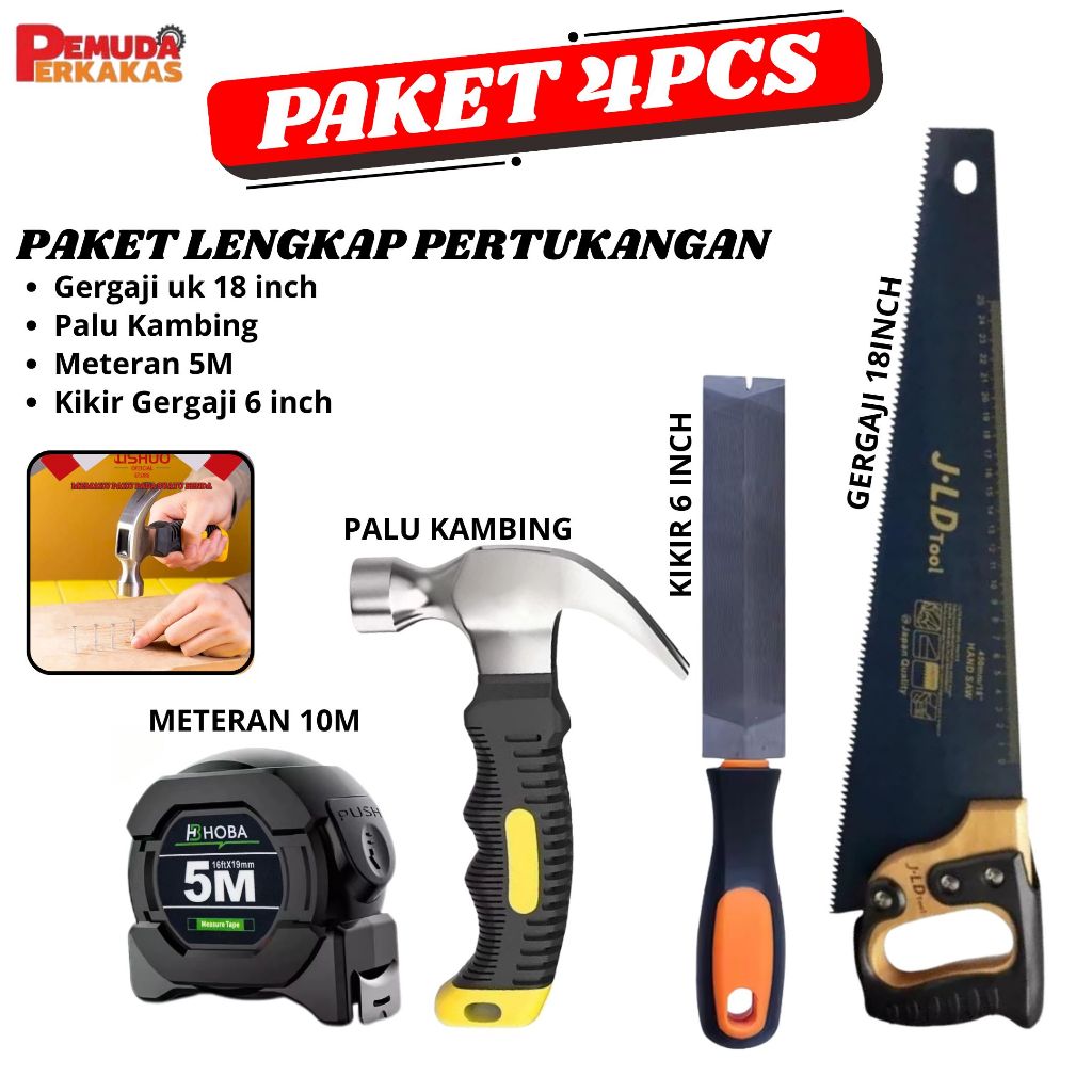 Paket Alat Tukang Palu Kamnbing Fiber Pahat Set Kayu-Sikumeter 10 Inch-Gergaji Kayu 18 Inch Meteran 5M Kikir Gergaji 6inch Termurah Berkualitas
