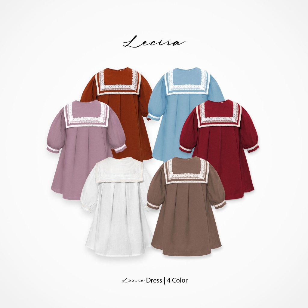 Barrahaimama - Dress Anak Perempuan Renda Brukat Vintage Lengan Panjang Bahan Katun Linen Polos