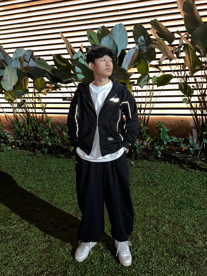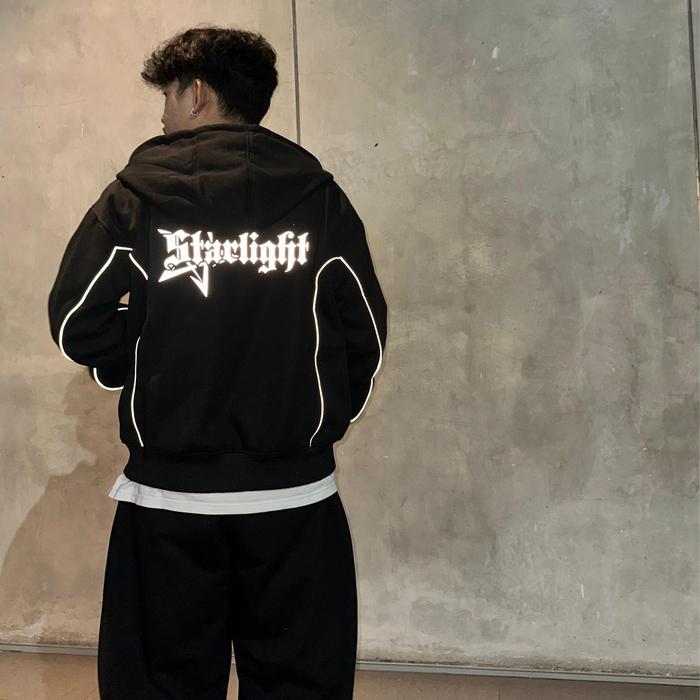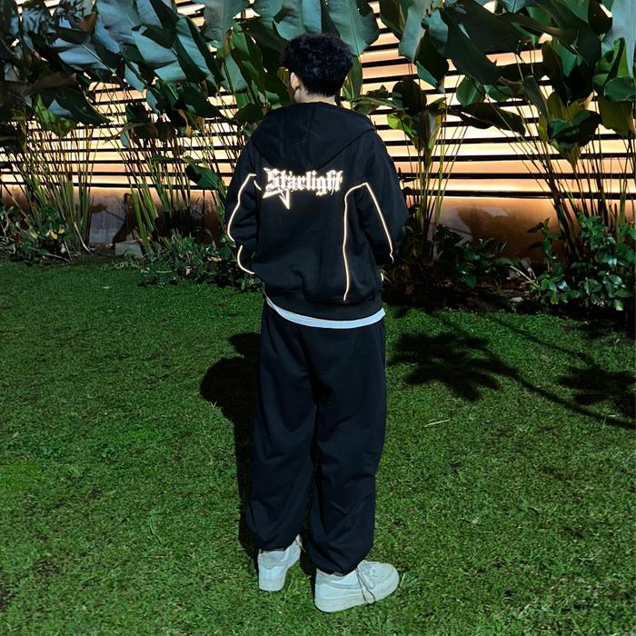 OFFLINE APPAREL HOODIE BOXY DOUBLE ZIPPER STARLIGHT / SABLON REFLEKTIF NYAMAN SWEATER - HITAM, M