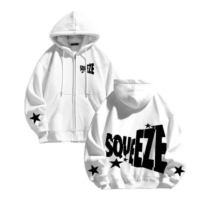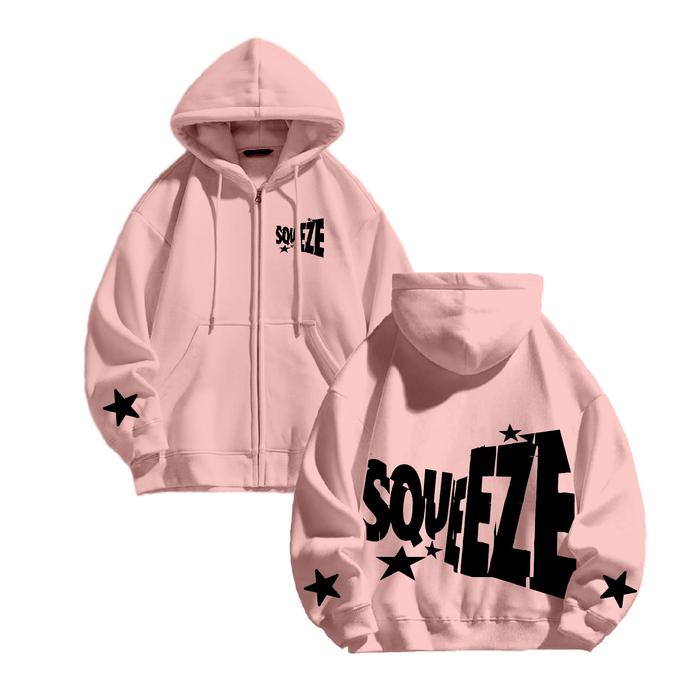 HOODIE ZIPPER JAKET [JYB] OVERSIZE SQUEEZE (SABLON) SIZE M-XXL UNISEX PRIA&WANITA 280GSM - HITAM, M