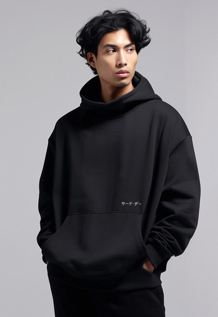 MOA49 HOODIE PRIA PREMIUM SCUBALUX ADEM "KATAKANA RIB" HITAM - L