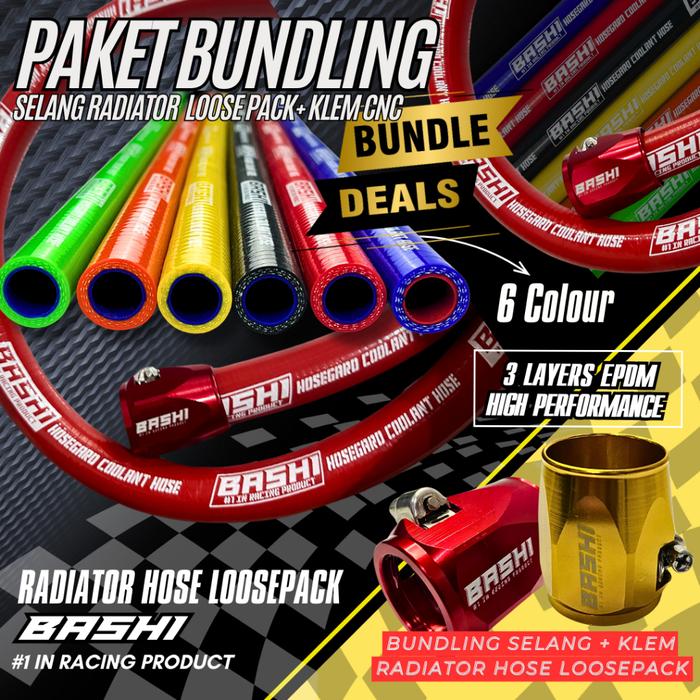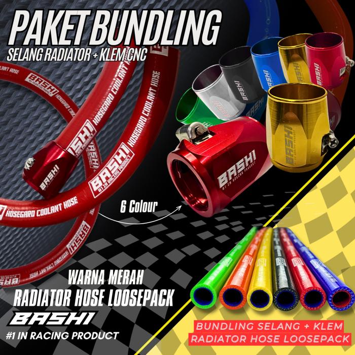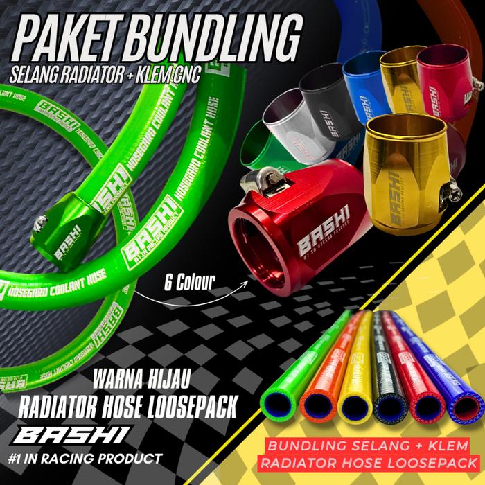 BASHI PAKET SELANG RADIATOR COOLANT HOSE INCLUDE KLEM CNC 1 METER TAHAN PANAS HIGH DUTY - GREEN, KLEM RED