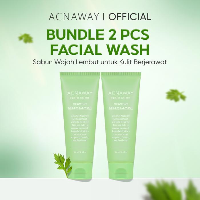 ACNAWAY BUNDLE 2 PCS MUGWORT GEL FACIAL WASH – SABUN WAJAH FACIAL CLEANSER LEMBUT UNTUK WAJAH BERJERAWAT & SENSITIF | PE