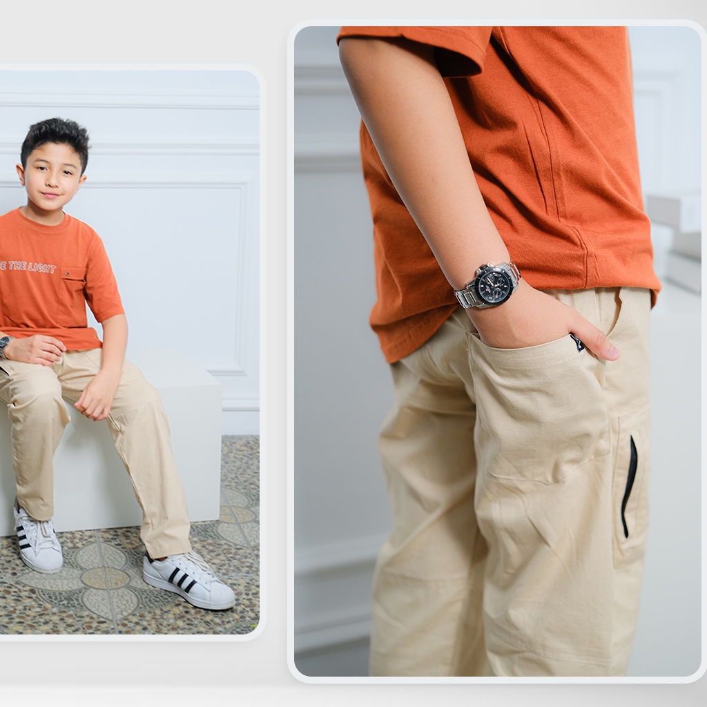 Bilhikma Celana Cargo Anak Cowok Usia 7–17 Tahun – Bahan Katun Adem • Nyaman Dipakai Seharian