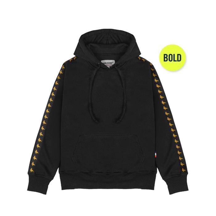 HOOLIGANS HOODIE BOLD TAPE PJ BLACK HITAM FLEECE PRIA - S