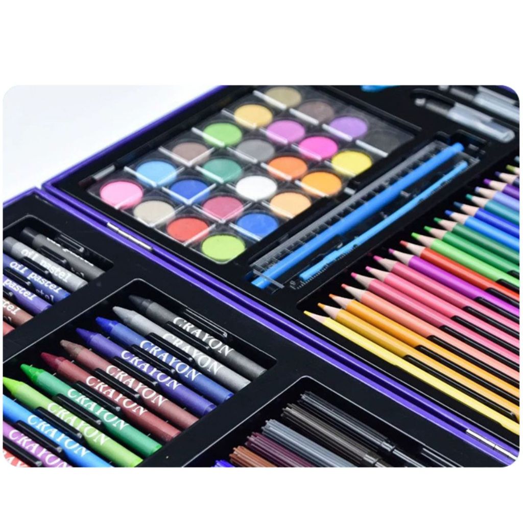 AVEN Crayon Set 128pcs Koper Aluminium Besi Krayon Pensil Warna 128Pcs Box Alat Lukis Anak Koper Set