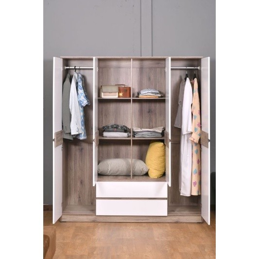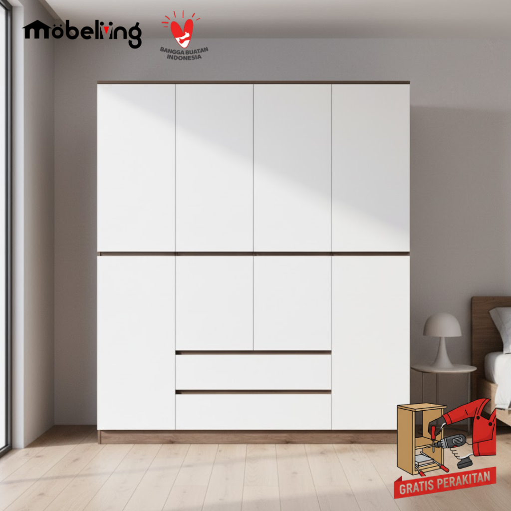 PROMO Mobeliving - Lemari 4 Pintu Santorini Dark Oak Minimalis Japandi Style