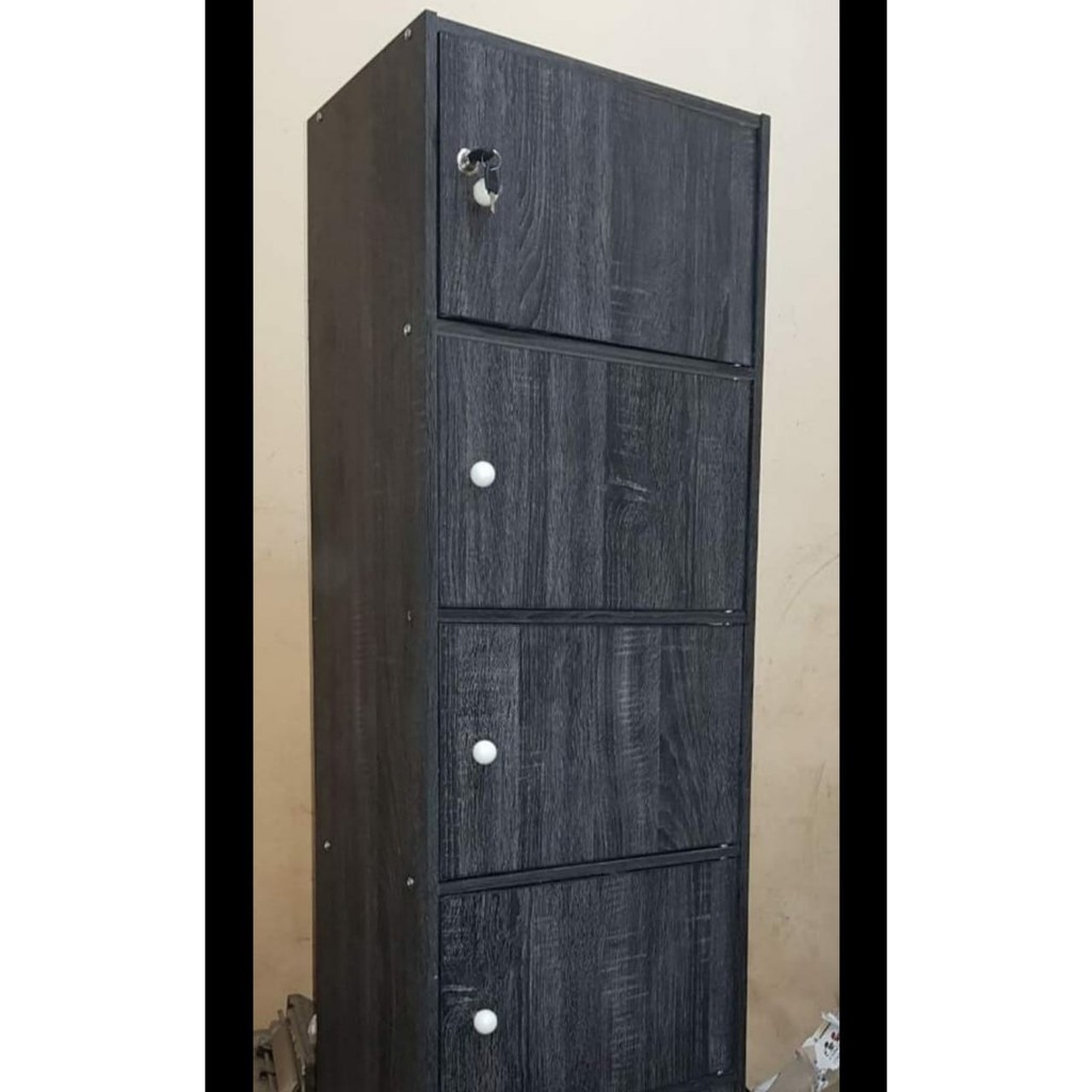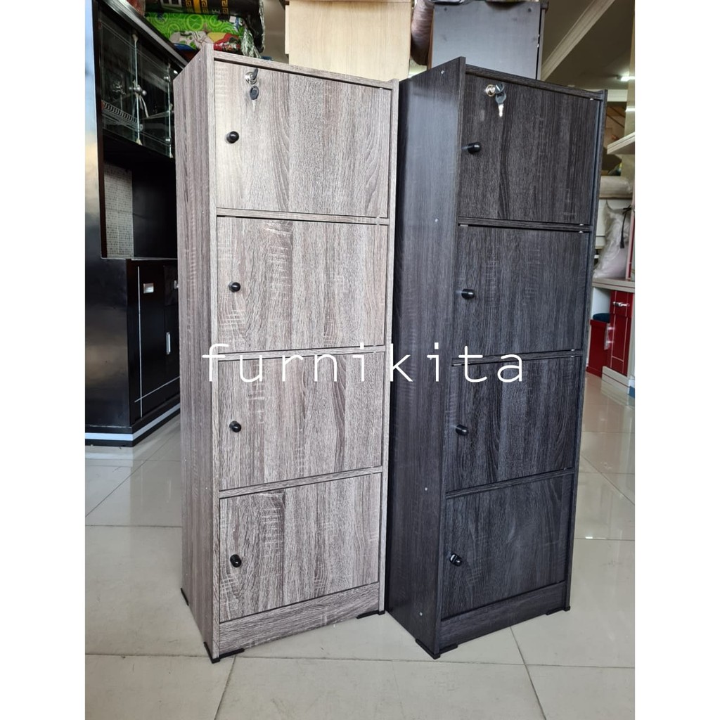PROMO LEMARI RAK BUKU SERBAGUNA SUSUN 4 KAYU DENGAN KUNCI