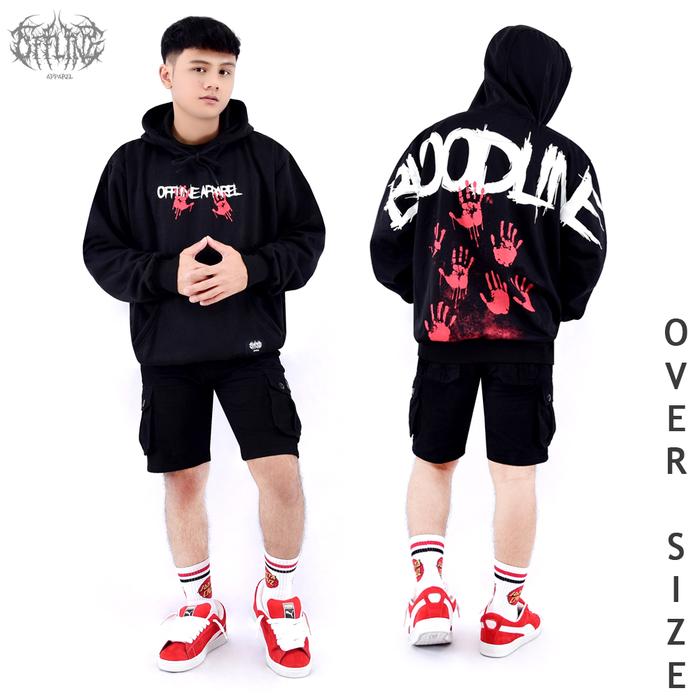 OFFLINE APPAREL HOODIE JUMPER OVERSIZE BLOODLINE / HOODIE KECE AESTHETIC / HOODIE HITAM KEREN / HOODIE COWOK DISTRO PRIA