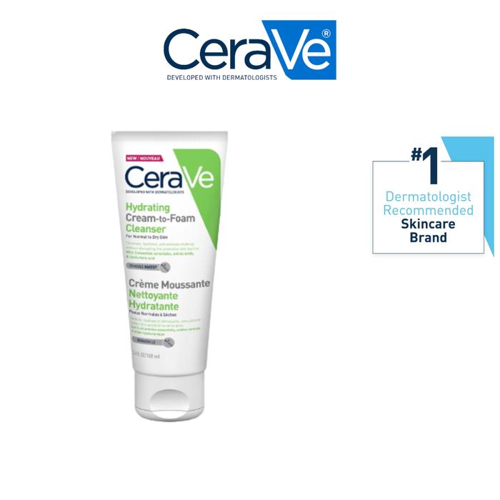 CERAVE KRIM CAIR KE BUSA PEMBERSIH HYDRATING CREAM TO FOAM CLEANSER 100ML - DENGAN ASAM HIALURONAT & AMINO ASAM UNTUK KULIT NORMAL HINGGA KERING