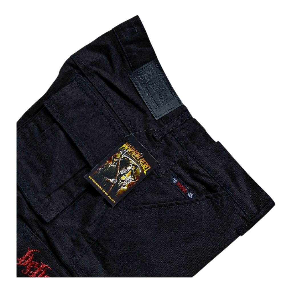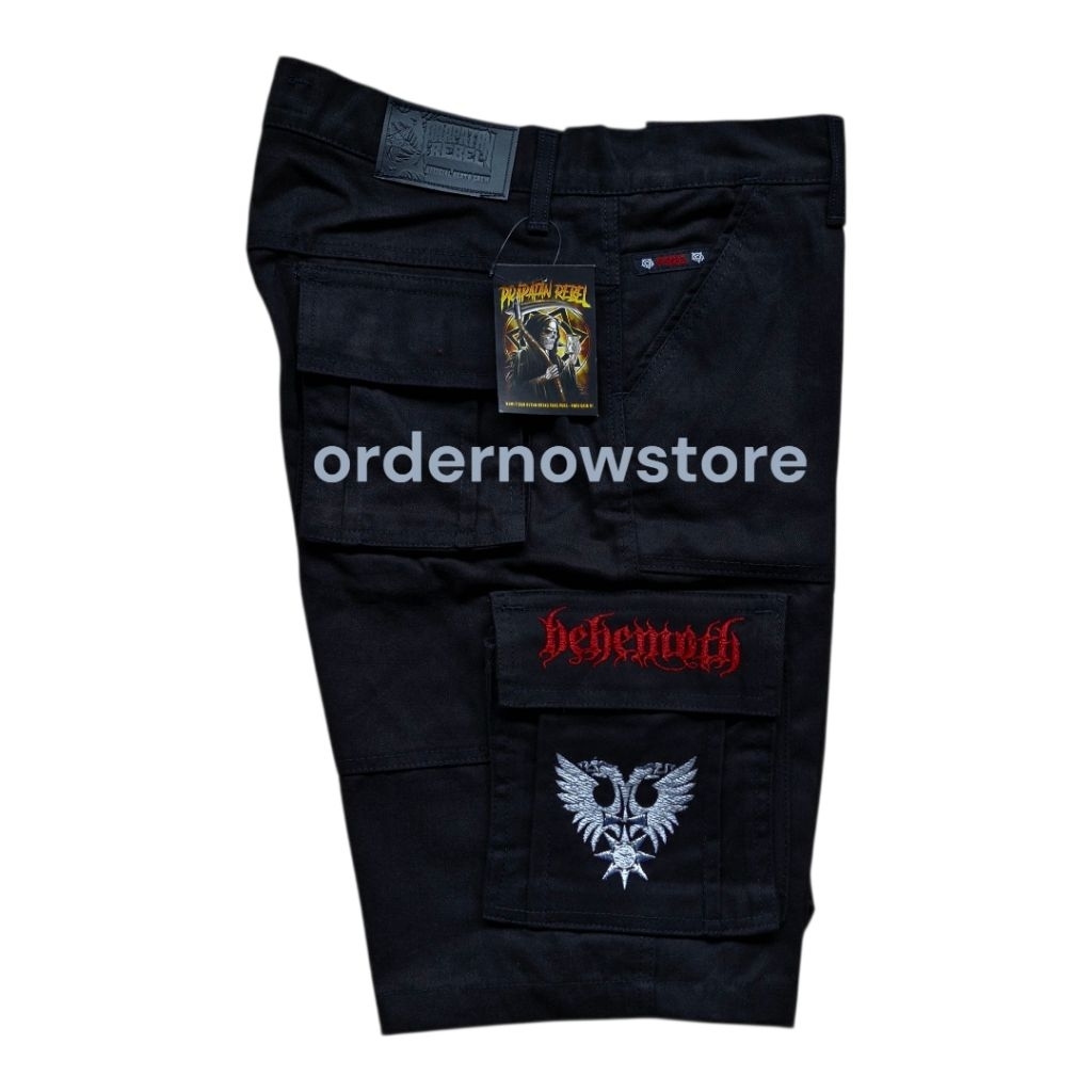 Celana Cargo Prapatan Rebel Pendek Hitam Size S M L Xl Bordir Behemoth