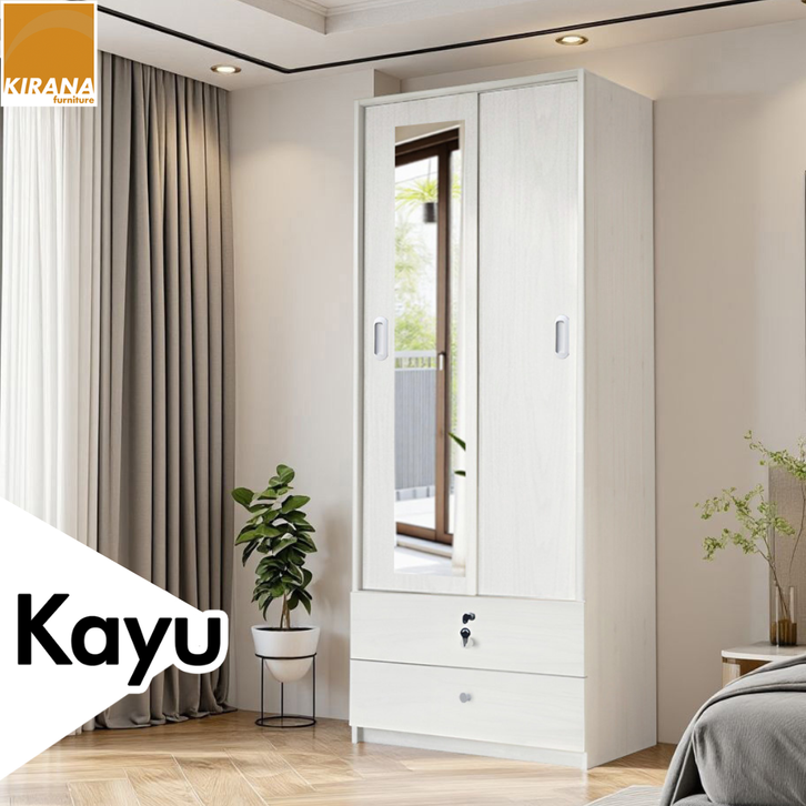 KIRANA London - Lemari Pakaian Kayu Wardrobe Sliding / Geser 2 Pintu Tinggi Minimalis