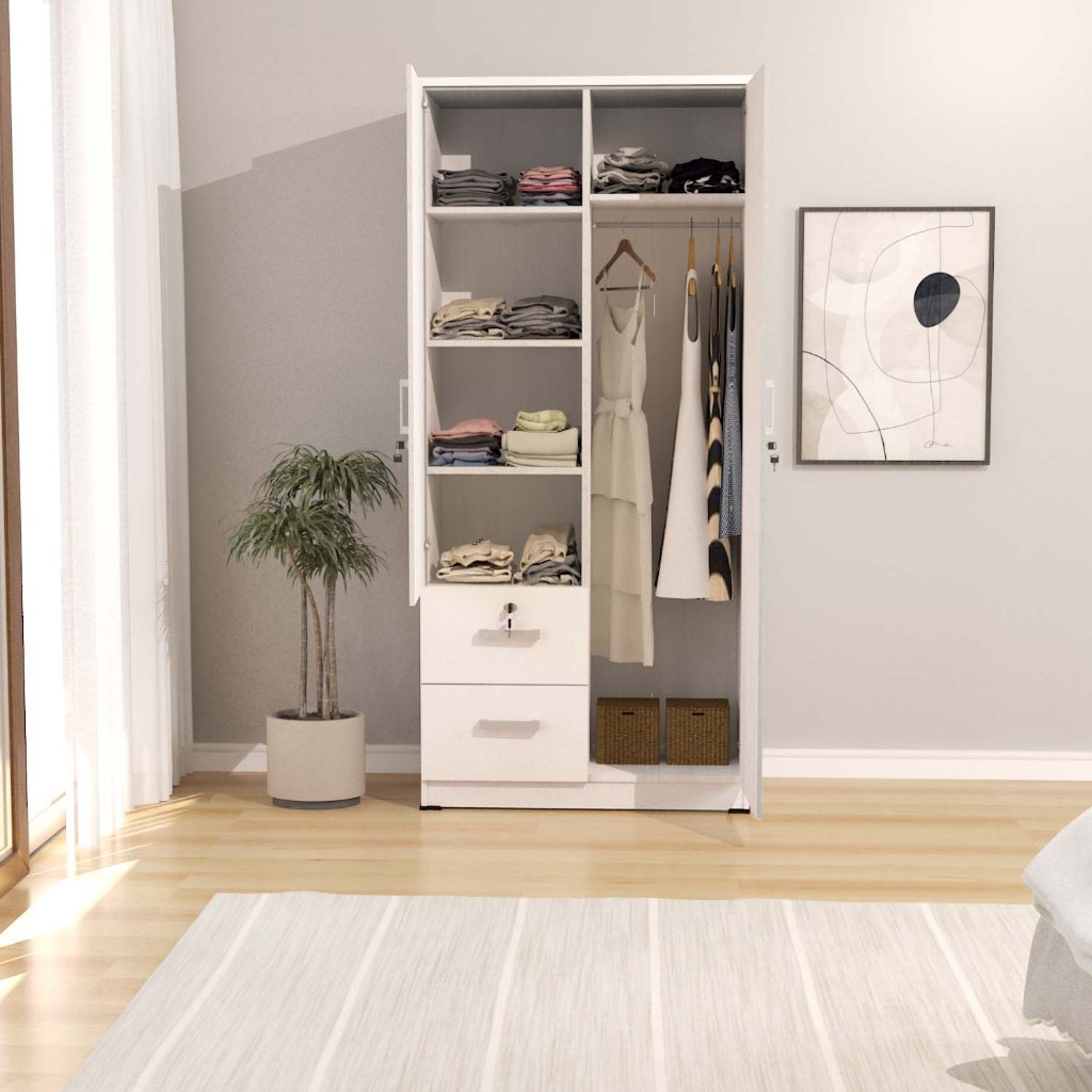 PROMO KIRANA Arizona - Lemari Pakaian Kayu Putih Coklat Modern Minimalis Wardrobe 2 Pintu Polos