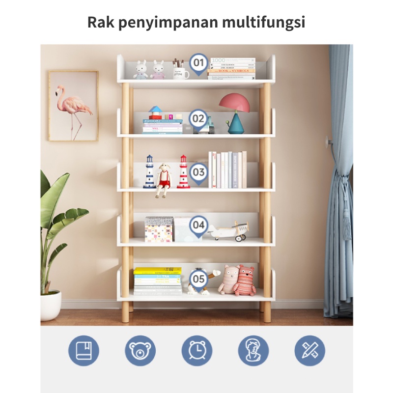 PROMO EARISE Lemari Buku Serbaguna 4 Susun Rak buku minimalis Rak Susun Kayu Penyimpanan Praktis