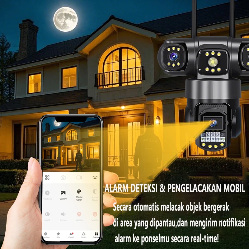 V380 Pro CCTV Kamera 3 Lensa Sesungguhnya 4K 16MP Outdoor IP67 Waterproof Pelacakan Seluler