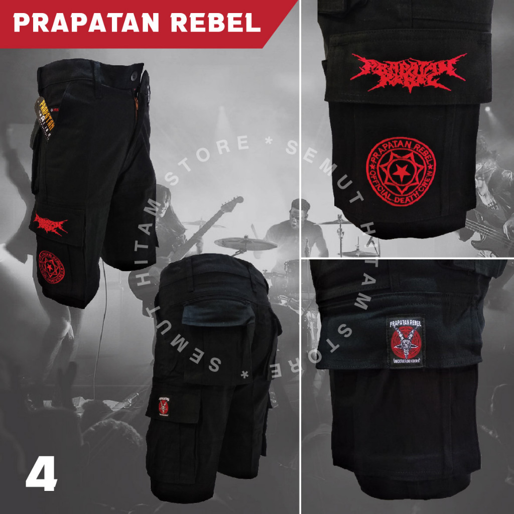 Prapatan Rebel Celana Pendek Cargo Kempol Pendek Alpin PDL Punk Metal Prapatan Rebel PL IDDM SLAYER DISCHARGE