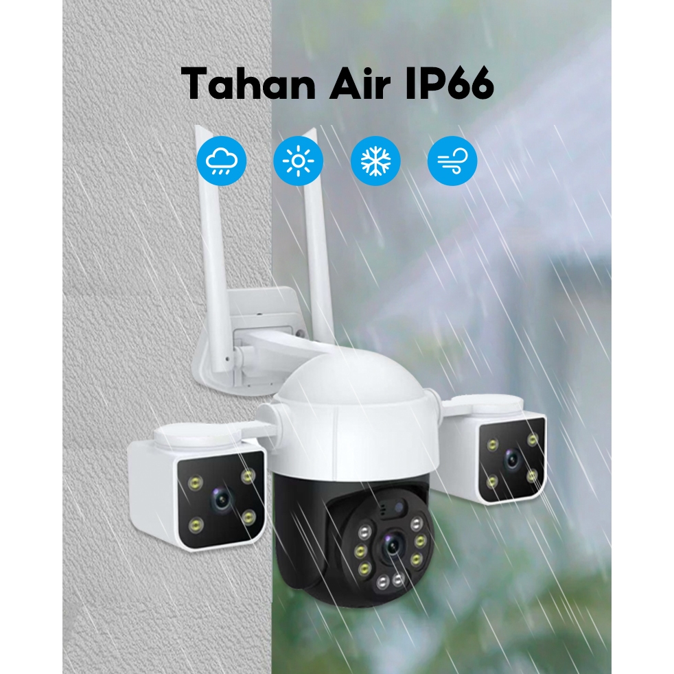 V380 H20 CCTV Outdoor Camera HD Wi-Fi Tahan Air Kamera keamanan Lensa Ganda Pelacakan Gerak