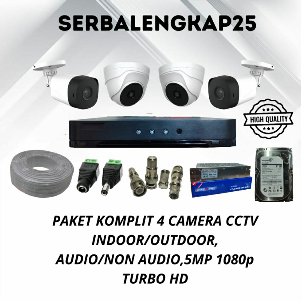 PAKET CCTV LENGKAP XMEYE 4 CHANEL 4CAMERA LENSA 5MP 1080P TURBO HD AUDIO/NON AUDIO TINGAL