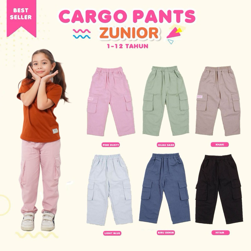 Celana Anak Perempuan Kargo Panjang Zunior Usia 1-12 Tahun