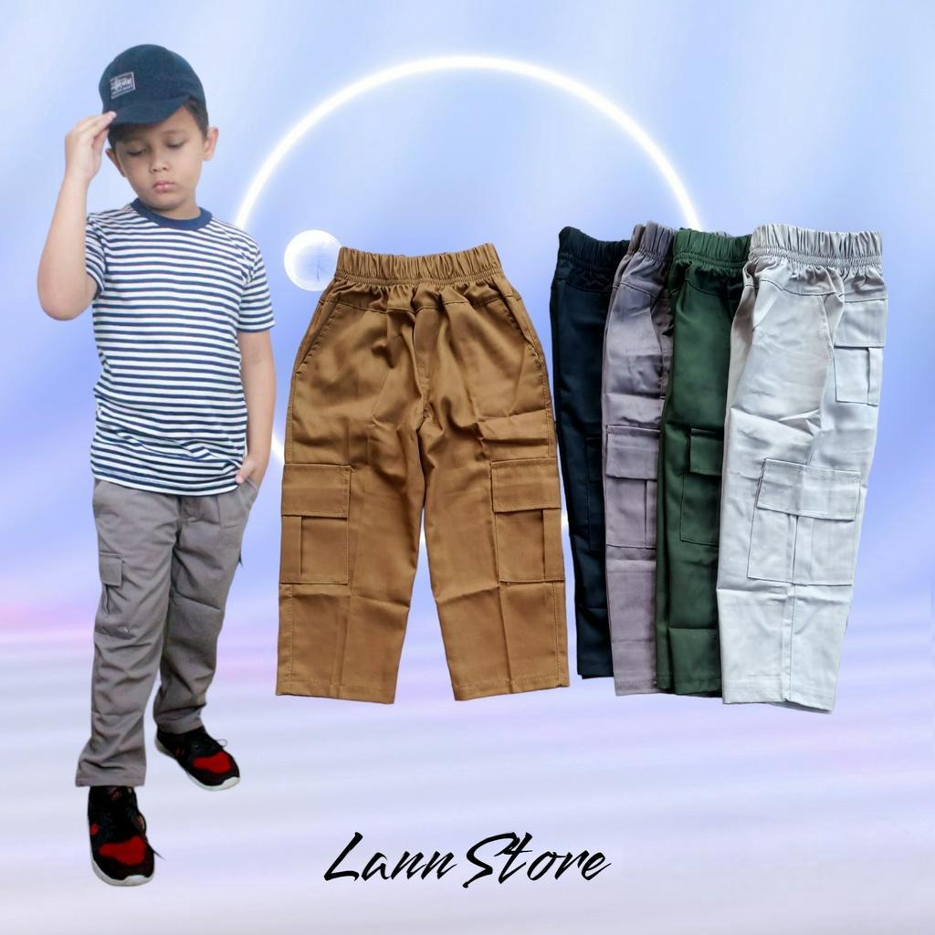 Celana Cargo Panjang Anak Laki Laki 1-13 Tahun Bahan American Drill