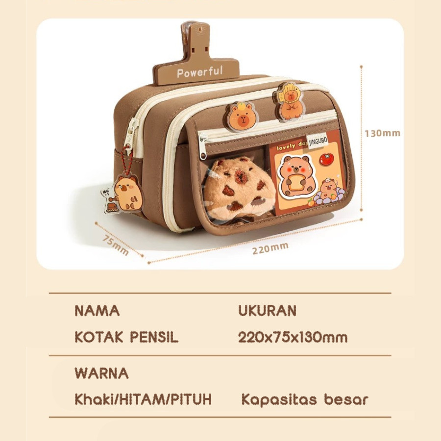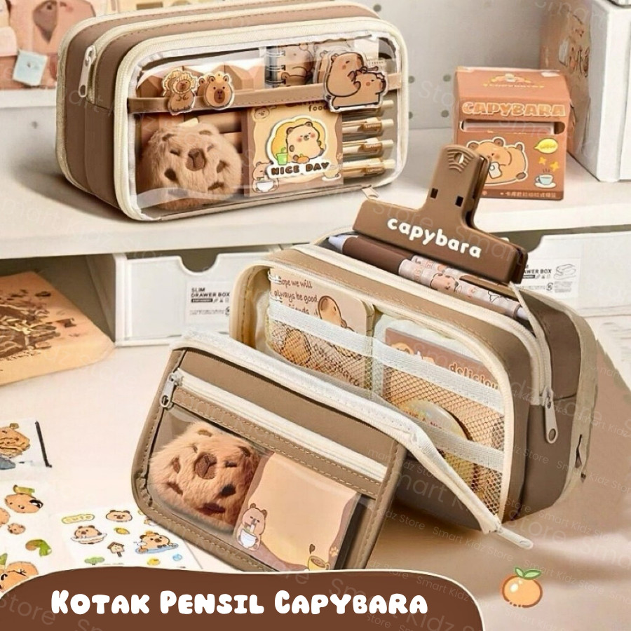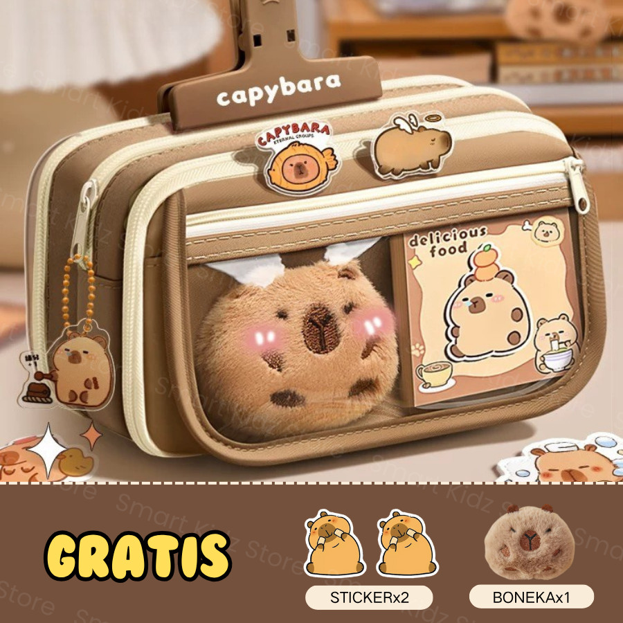 Kotak Pensil Capybara Aesthetic Kapasitas Gratis Boneka Kecil+Sticker