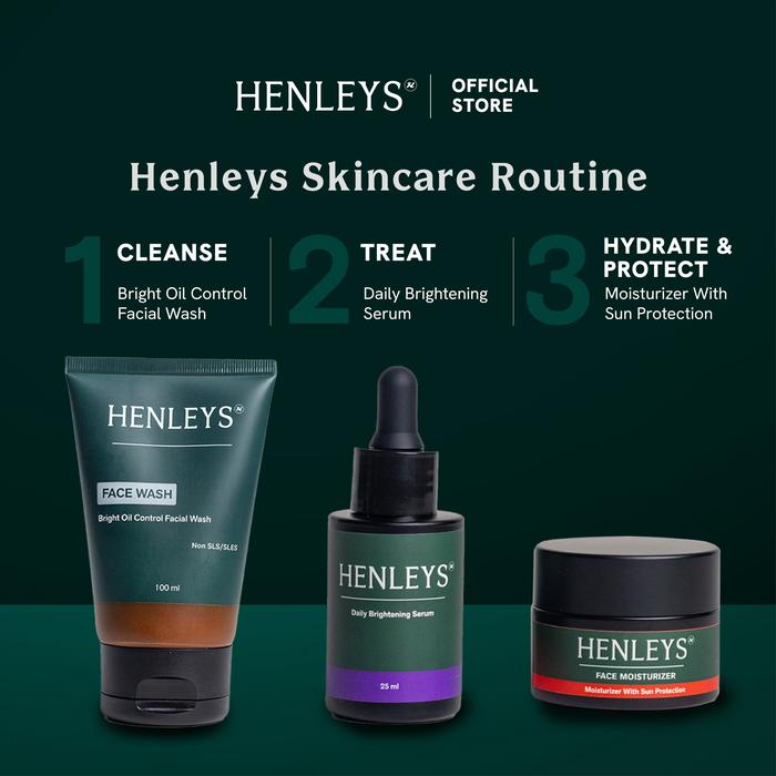 HENLEYS MEN’S DAILY SKINCARE ESSENTIALS | FACIAL WASH | MOISTURIZER | BRIGHTENING SERUM | MENGONTROL MINYAK, MENCERAHKAN, MELEMBABKAN KULIT, MELINDUNGI DARI SINAR UV, MENCEGAH JERAWAT - B-DAILY-SKIN