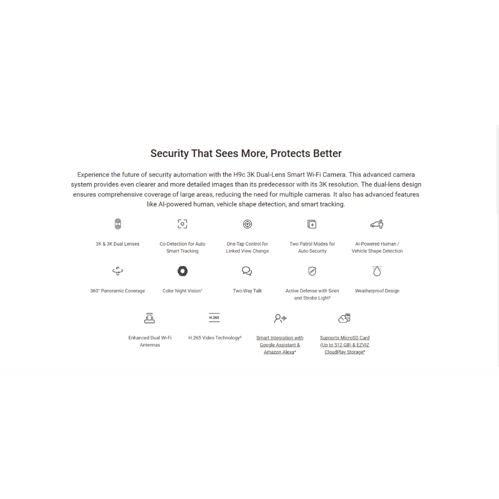 Ezviz H9c Dual-Lens 2K 3MP Smart Home Wifi Pan Tilt IP Camera CCTV Outdoor 1296p