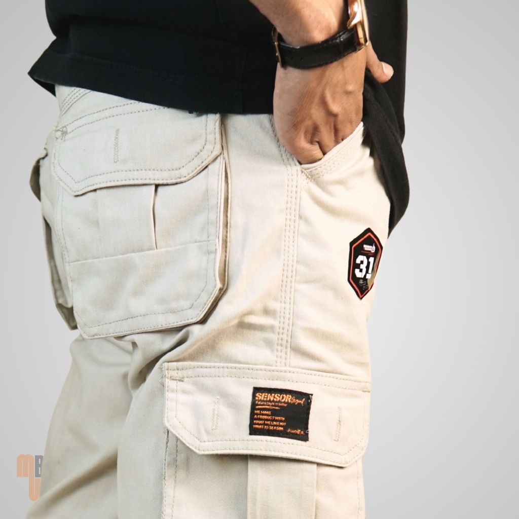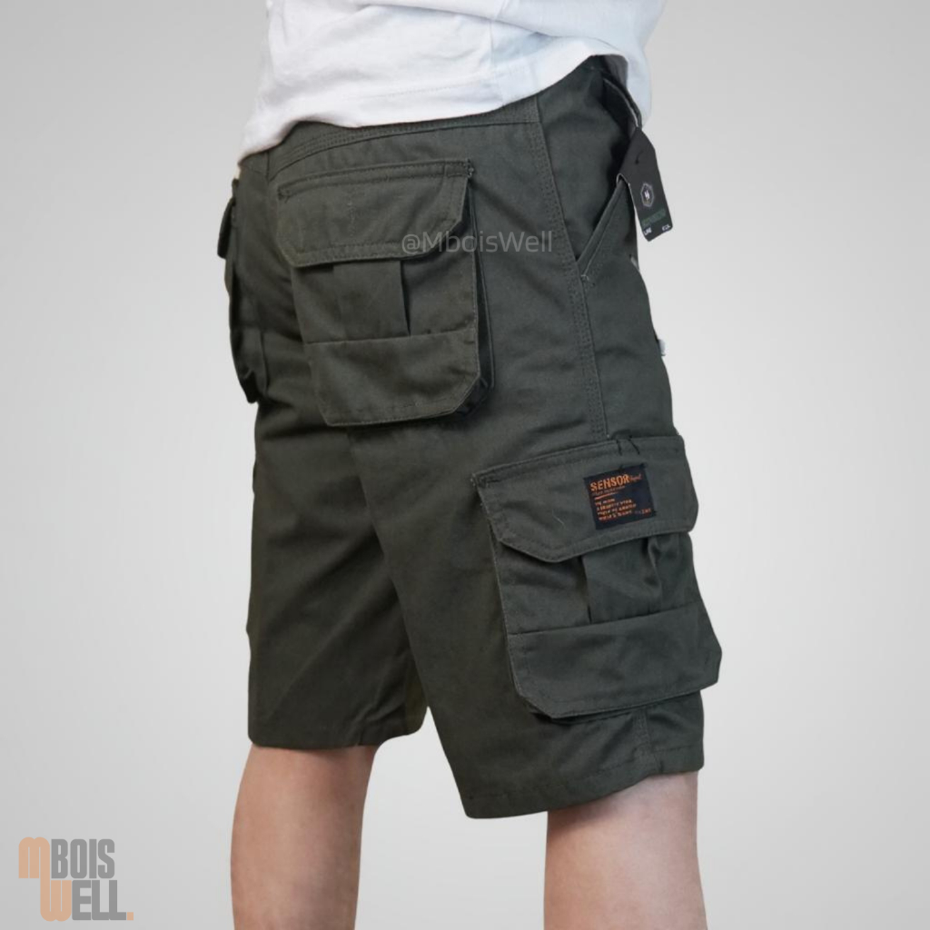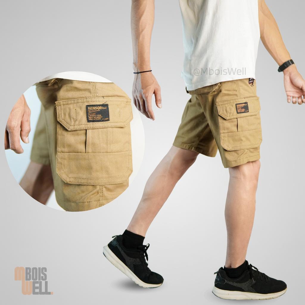 Celana Pendek Cargo Pria Premium SENSORLINE | Stylish, Cutting Super Rapi | Bahan Tebal Twill Suede