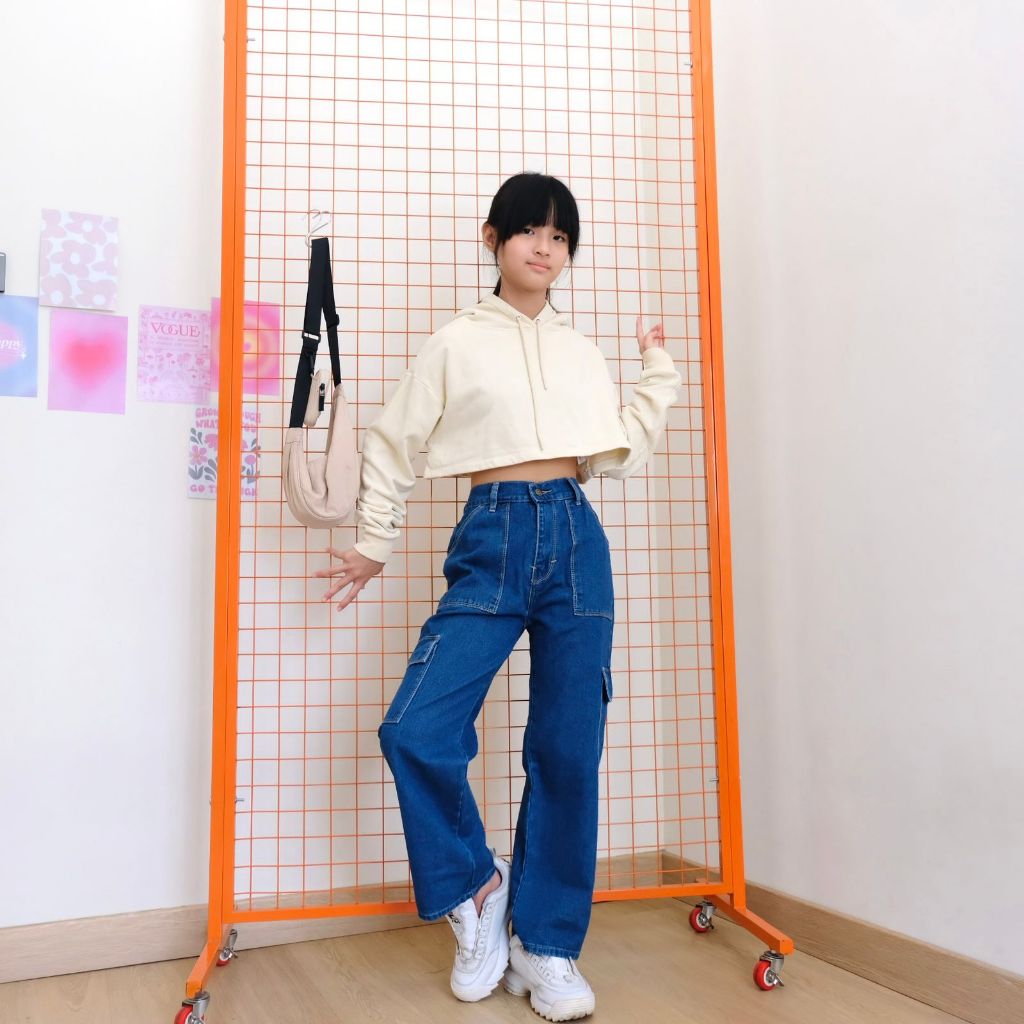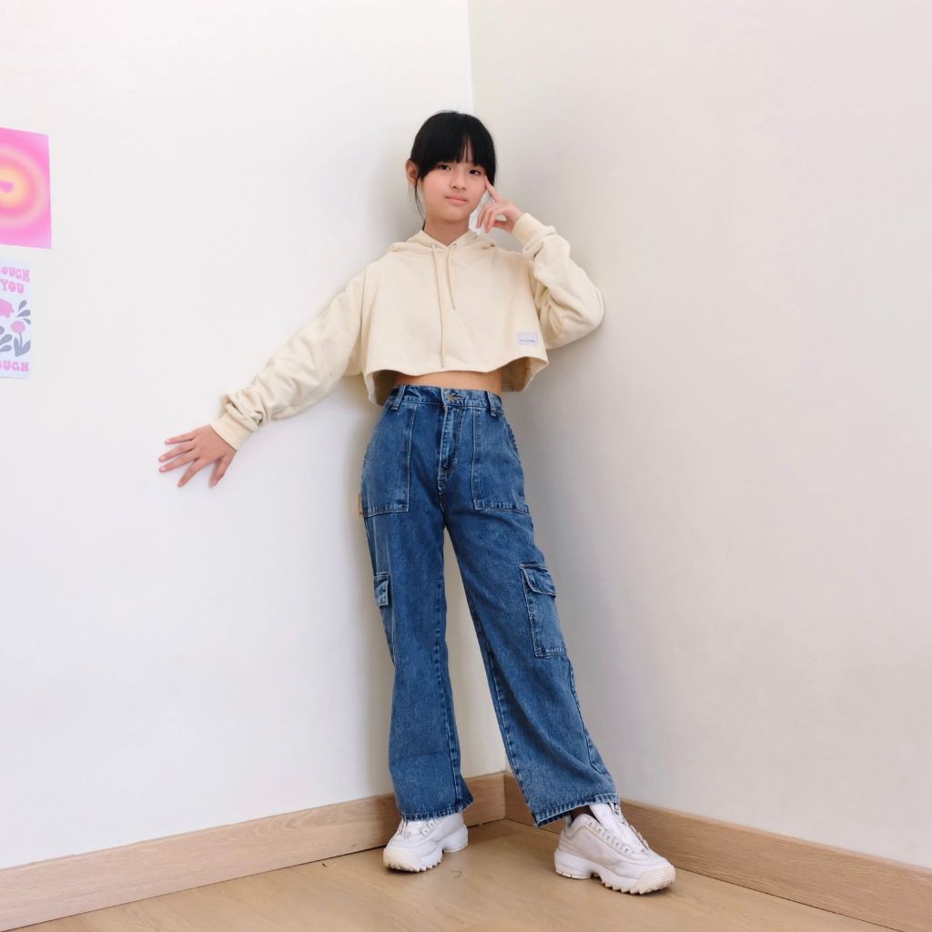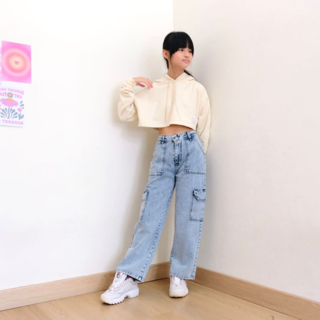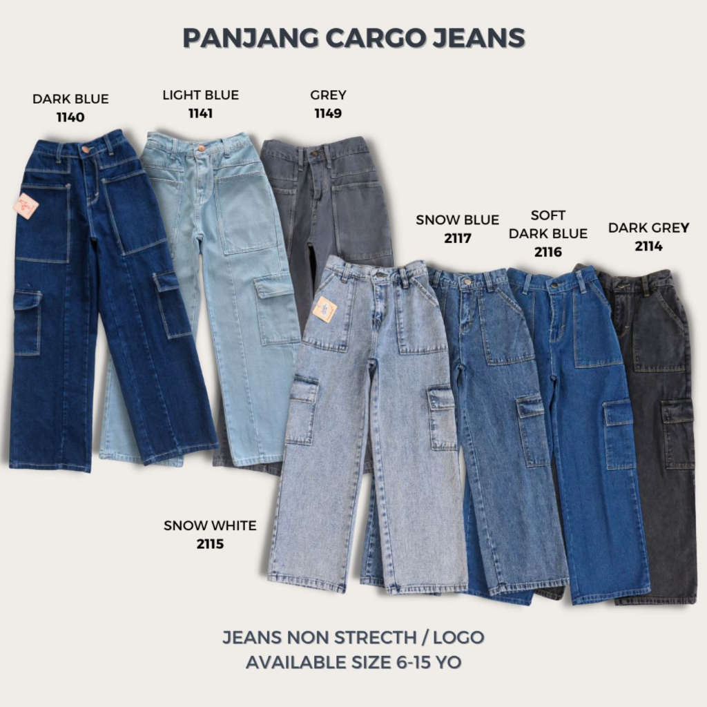 Celana Cargo Jeans Panjang Anak Perempuan Tanggung Usia 6 7 8 9 10 11 12 13 14 15 Tahun Nomenakids 1140-41