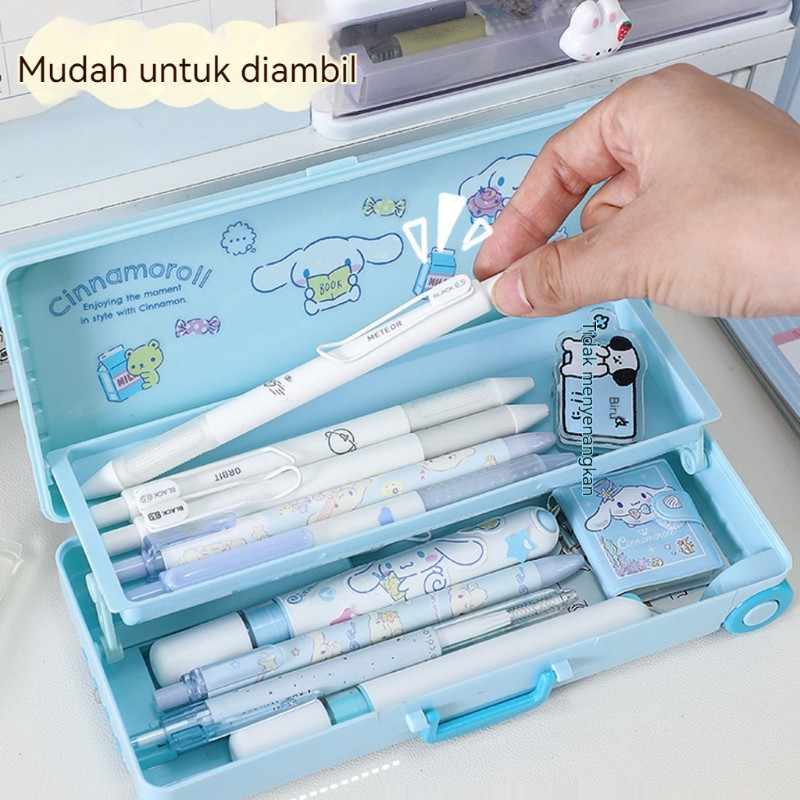 【】Kotak Alat Tulis Berbentuk Kotak Troli Lucu dengan Stiker Lapisan Ganda Kotak Pensil Plastik Kapasitas Besar Hadiah Alat Tulis Siswa
