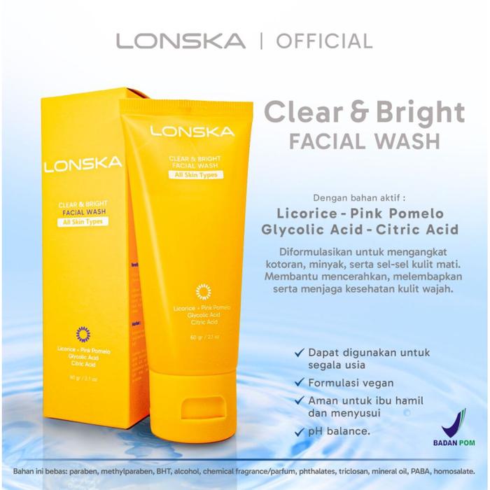 LONSKA CLEAR & BRIGHT FACIAL WASH 60GR SEMUA JENIS KULIT SABUN CUCI MUKA PEMBERSIH WAJAH BPOM