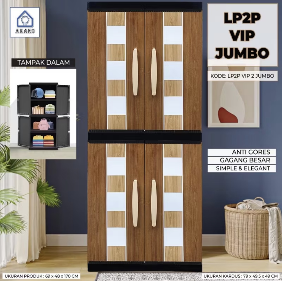 Lemari Pakaian Plastik Akako LP2P VIP JUMBO - Lemari Plastik Berkualitas / Lemari Plastik 4 Susun Jumbo