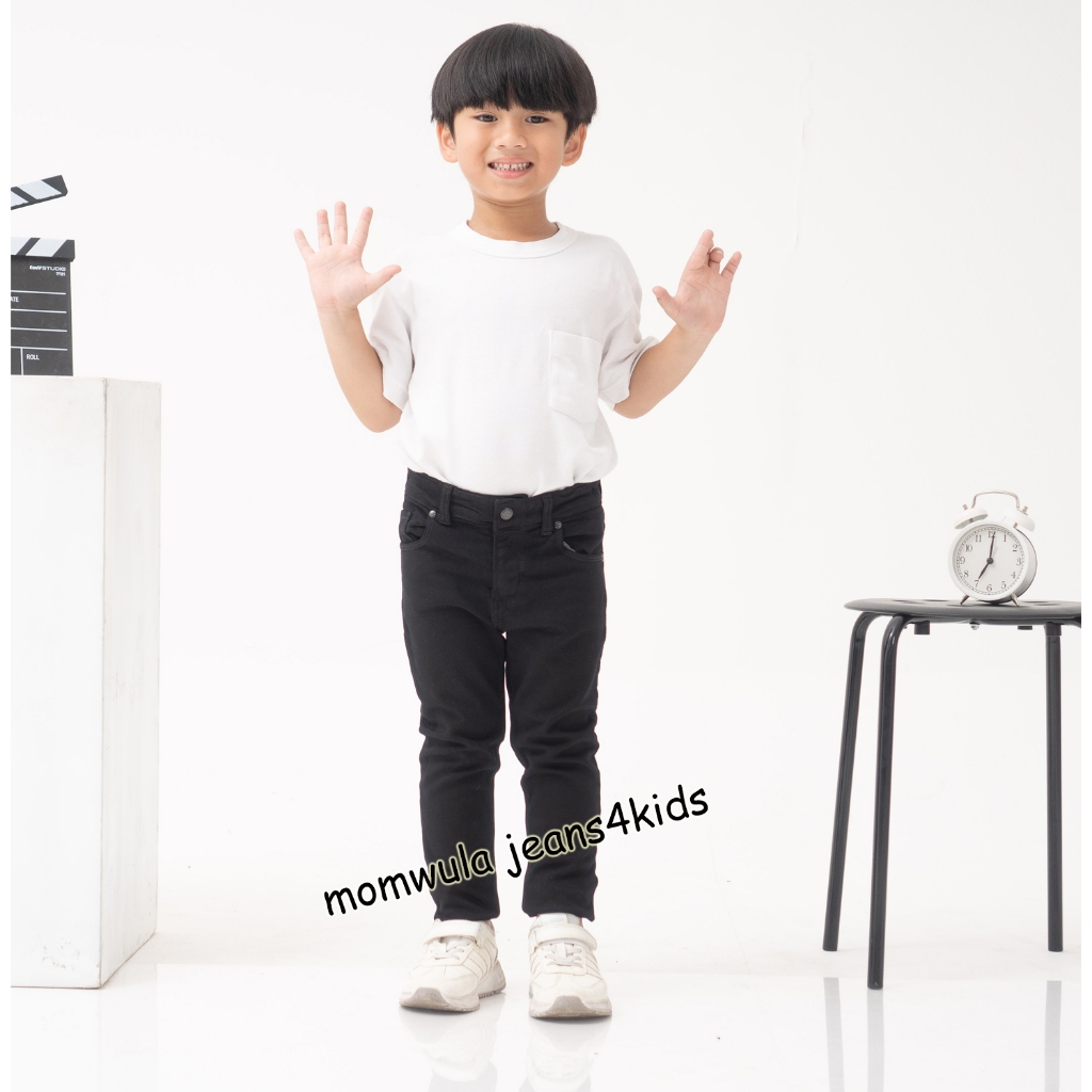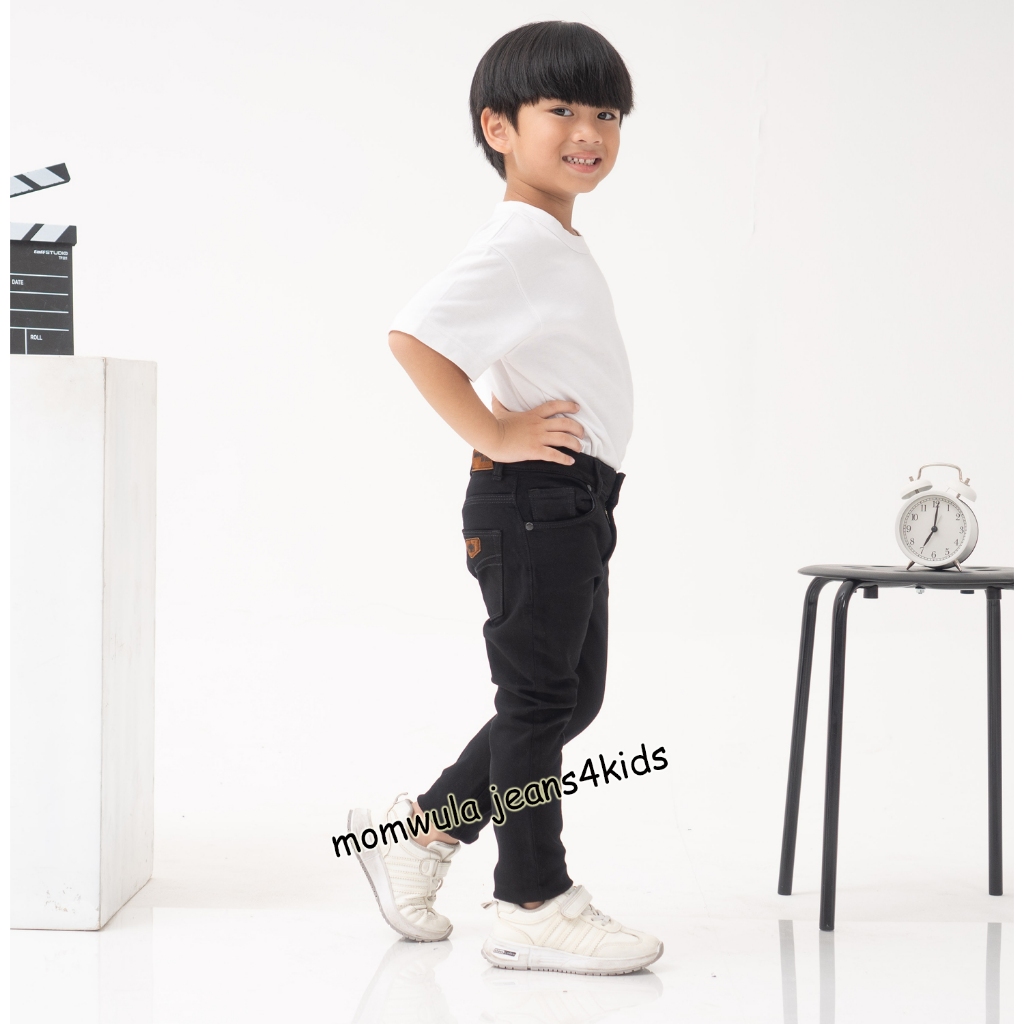 Celana Jeans Hitam Anak Soft Jeans Stretch Momwula Slim Fit Ukuran 4-10 Tahun Kode Rb -01