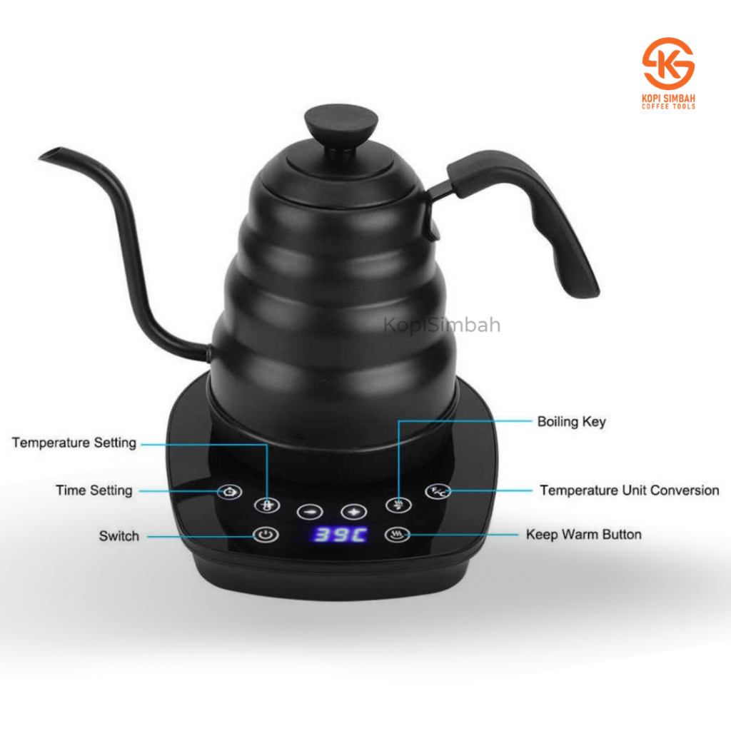 SIMBAH Electric Kettle Goose Neck 1 L Black Series Teko Kopi Leher Angsa Ketel Elektrik Hitam