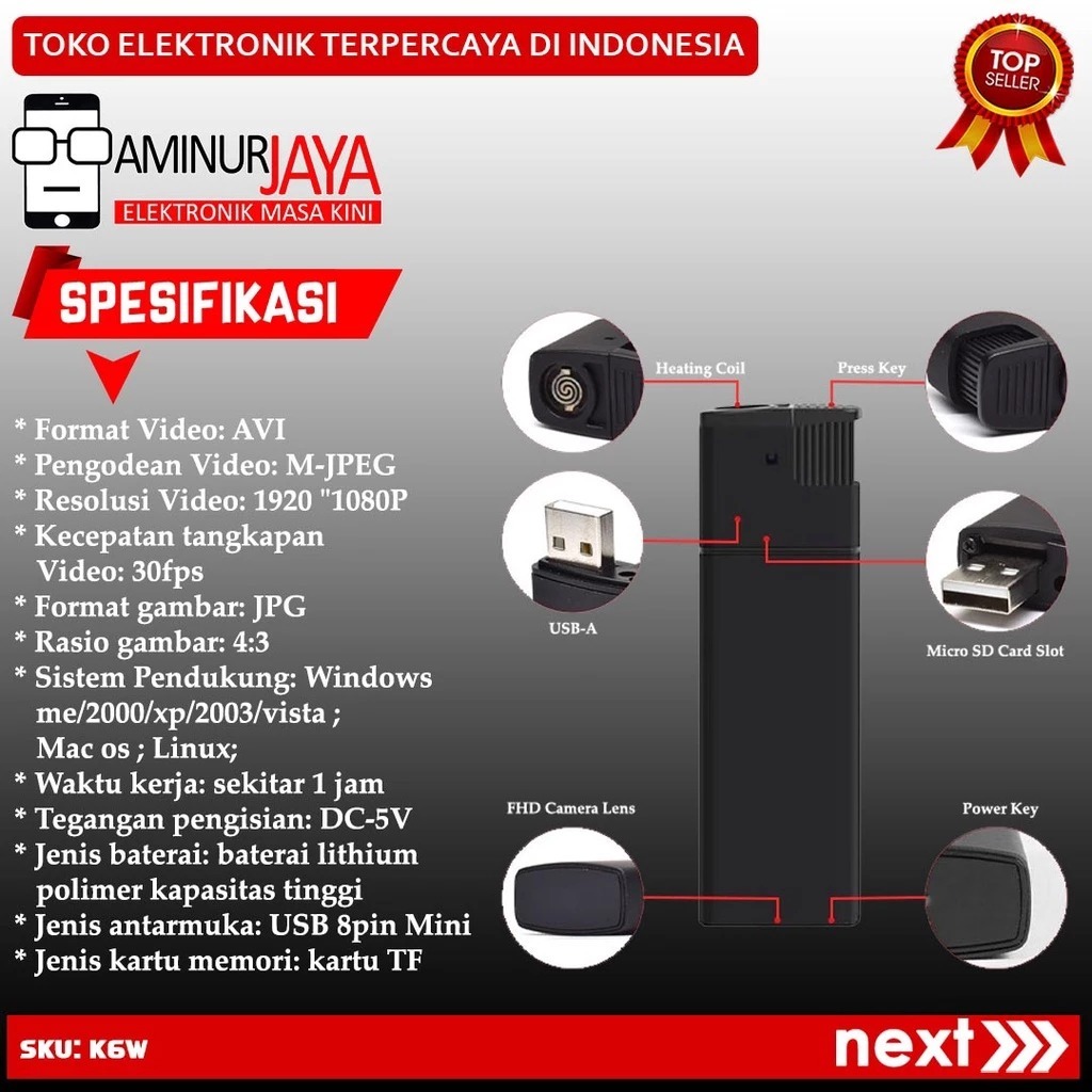 K6WIFI Hidden Spy Camera WiFi Korek K6 Spycam 1080P Night Vision Kamera Rahasia Unik Mini Recorder