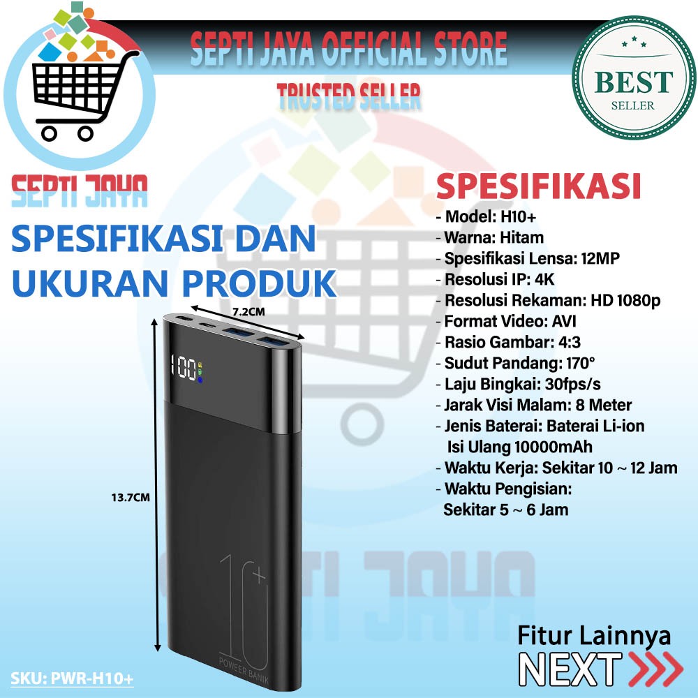 Spy Kamera Powerbank H10+ WIFI Wireless 10000MAH Hidden Spycam Camcorder Camera Full HD 1080P Spy Cam Original Berkualit